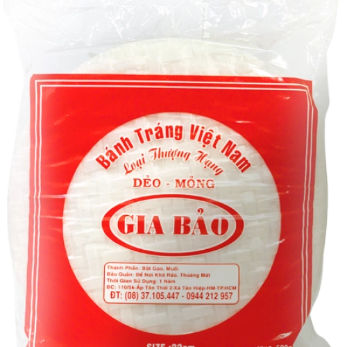 Bánh tráng siêu mỏng của Gia Bảo được thiết kế đặc biệt với độ dẻo và mỏng vừa đủ, giúp bạn không cần nhúng nước mà vẫn dễ dàng cuốn, giữ trọn hương vị món ăn. Sản phẩm mang đến sự tiện lợi tối đa cho những bữa ăn gia đình, tiệc nhỏ hay picnic, chỉ cần mở bao bì là có thể dùng ngay.